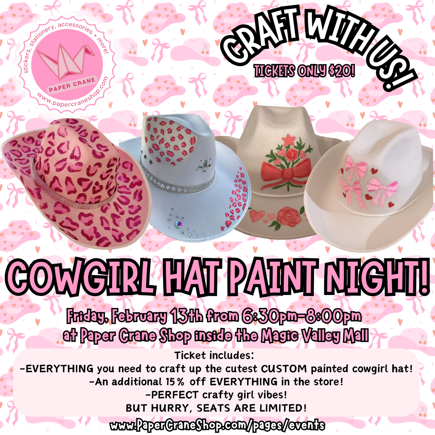 February 13th - COWGIRL HAT PAINT NIGHT!